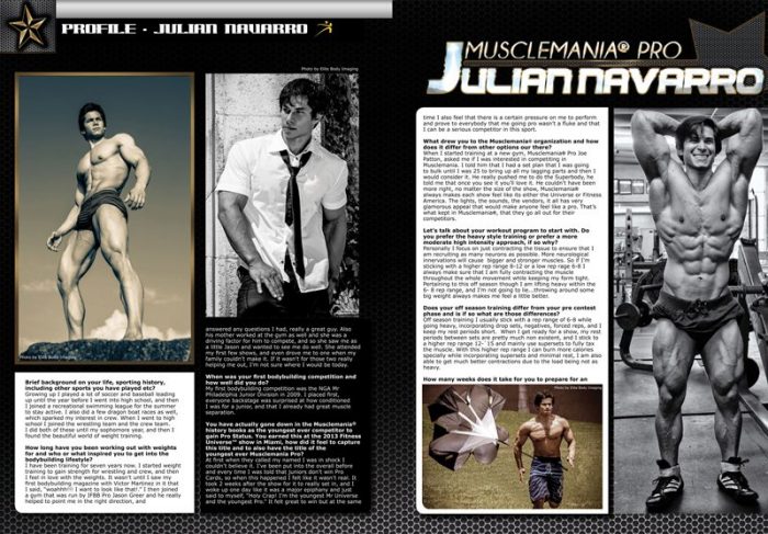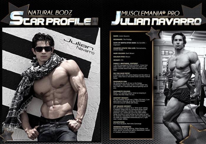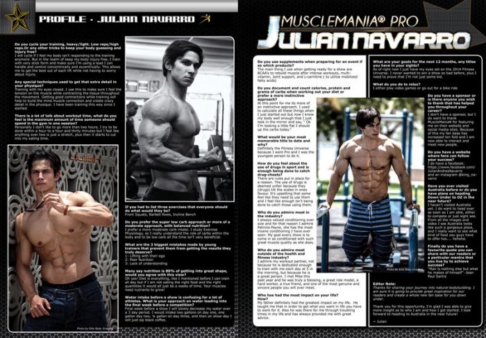 2013 Musclemania® Pro Julian Navarro features in Australian Natural Bodz Magazine Volume 6 issue 5 as a Star Profile Athlete.