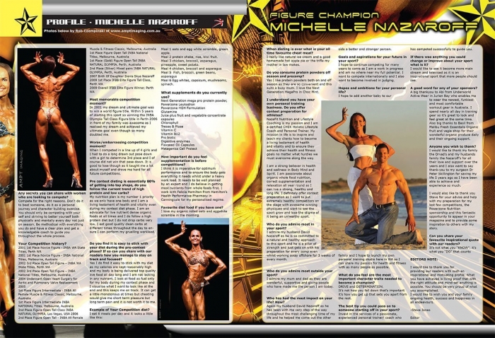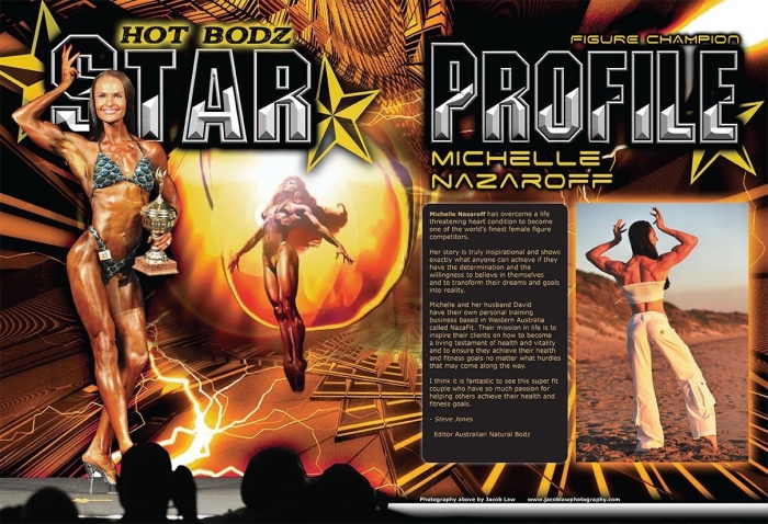 Michelle Nazaroff of Western Australia features in Australian Natural Bodz Volume 1 Issue 6 as a Star Profile athlete. Michelle has overcome a life threatening heart condition to become one of the world’s finest female figure competitors. Her story is truly inspirational and shows exactly what anyone can achieve if they have the determination and the willingness to believe in themselves and to transform their dreams and goals into reality.