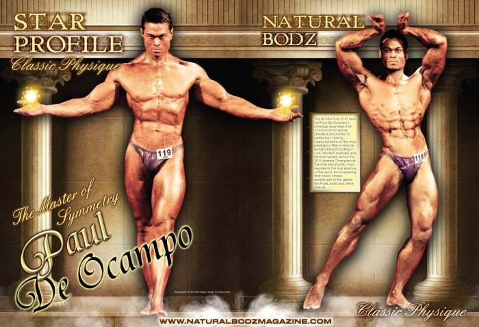 The architecture of 42 year old Paul De Ocampo’s physique resembles that of a Roman Sculpture chiselled and honed to perfection. Having captured some of the most prestigious titles in Natural Bodybuilding including 11 x Mr. Western Australia and his most recent victory the 2011 M asters Champion at the ANB Asia Pacific, Paul represents the true essence of the sport, encompassing that classic shape reminiscent of the greats like Frank Zane and Steve Reeves.
