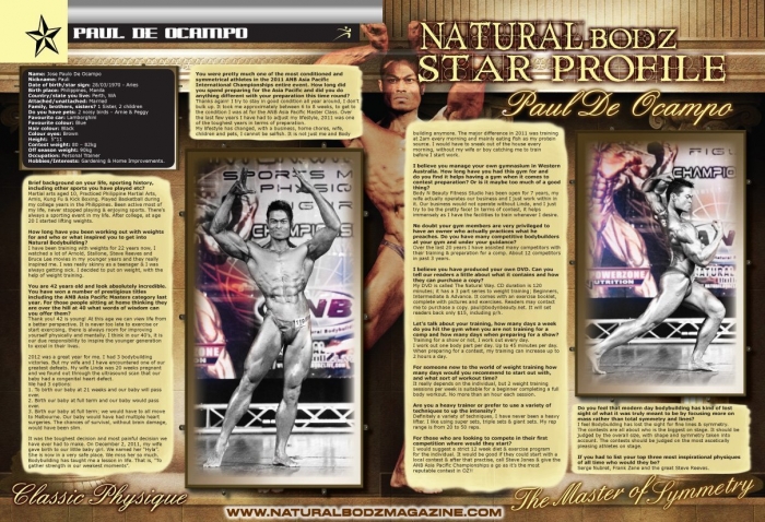 Paul De Ocampo of Western Australia features in Australian Natural Bodz Magazine Volume 4 issue 4 as a Star Profile Athlete.